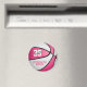 Este bonito imán para chicas con temática de baloncesto presenta la imagen de un baloncesto realista con paneles alternados de color rosa y blanco - fácilmente personalizar con el nombre de la escuela, el nombre de la mascota y el nombre del jugador y número de camiseta - de katz_d_zynes