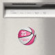 Este bonito imán para chicas con temática de baloncesto presenta la imagen realista de un baloncesto con paneles alternados de color rosa y blanco - fácilmente personalizar con el nombre de la escuela, el nombre de la mascota y el nombre del jugador y número de camiseta - de katz_d_zynes