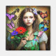Imán Chica bonito con flores rojas y mariposas