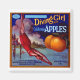 Etiqueta de la caja de fruta de época para las manzanas de la marca Chica de buceo de California.