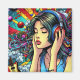 Imán Chica escuchando música sobre audífonos Psicodélic