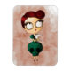 Chica espeluznante con Opossum. Este chica está preparado para el Monster Ball de Halloween. Con un vestido con forma de cráneo verde y un muñeco enfurecido, será la Reina de la Bola. Es tan bella - cabeza grande, cabello rojo y ojos redondos - espeluznante y espeluznante, pero bella, ¡eso es lo que es!