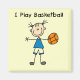 Un chica de baloncesto con una figura de palos en una camiseta azul y un texto que dice "Juego al baloncesto" en chicas ¡Camisetas de baloncesto, caramelos, tazas, cartas, pegatinas, botones de baloncesto, cadenas de claves y más!