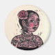 Lydia, la imagen de la Dama de Tatuaje, de un bloqueo de línea a mano tallado y presionado a mano por Neil Stavely