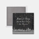 Chicago Illinois Etched Black & White Skyline View, Black Background Gold & White Stars Collection - Save the Date Magnet Personalizables Invitaciones y accesorios con una estilizada mirada en negro y blanco grabada al horizonte de Chicago Illinois. También tienen un fondo nocturno de estrellas negras con estrellas doradas y blancas.