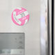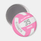 Este imán temático sobre voleibol con el nombre del equipo personalizado presenta la imagen realista de un voleibol con paneles rosas y blancos sobre el que se puede personalizar el nombre del jugador y el número de camiseta más el nombre de la escuela o club y el nombre de la mascota en un tipo de letra de letra varsity - por katz_d_zynes