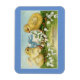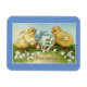 En este imán de Pascua se presenta una imagen dulce y vintage de dos pollitos con flores y un huevo. Con el mensaje "A Glad Eastertide", este imán se puede utilizar para decorar o regalar como un pequeño regalo.