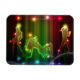 Diseño moderno, moderno y colorido con formas de neón brillante de tres chicas bailando a la luz fiesta.