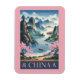 Imán China Illustration Pink Travel Art Vintage