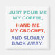 Un regalo gracioso para los ladrones. "Sólo dame mi café, dame mi crochet y lentamente retrocede".
