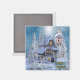 Imán Christmas Party Winter White Snowman Blue Rustic
