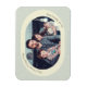 A playful photocard where the photo is placed in the middle of the card in an oval shape, lines are going around the photo and the greetings is written in a playful font around the photo.