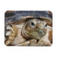 Fotografía de primer plano de la cara de una mascota Sulcata Tortoise (tortuga con purga africana), "Edwina Sulcata" mirando y escuchando algo importante.