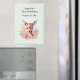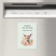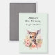 Imán de guardar la fecha de la fiesta con una hermosa ilustración con un ciervo lindo. Rodeado de rosas y flores rosadas.