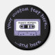 Cinta de audio de época Lilac. Icono de vector con colores de personalizable. Color de fondo personalizado. Dos campos de texto personalizado en círculo y uno en cinta.