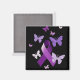 Una cinta morada de sensibilización con mariposas: Púrpura es para: Alzheimer Conciencia sobre la enfermedad Arnold Chiari Conciencia sobre la malformación de la infancia Hemiplejía y conciencia de la apoplejía Campaña de sensibilización sobre la fibrosis quística Violencia doméstica Campaña de sensibilización sobre la fibromialgia Hidradenitis Suppurativa Sensibilización sobre el cáncer pancreático Día de la homofobia y las víctimas Sarcoidosis Día de la Conmemoración de los Trabajadores