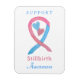 El nacimiento de un bebé muerto usa una cinta rosa y azul para apoyar la conciencia por su causa. El imán personalizado presenta un imán de arte cardíaco de cinta de sensibilización con el mensaje "Apoyo a la toma de conciencia sobre la muerte de niños". El NIH define la pérdida de embarazo como "cuando un embarazo termina inesperadamente antes de la vigésima semana. A veces se le llama pérdida del embarazo precoz, pérdida del embarazo a mitad de trimestre, aborto espontáneo, o desaparición fetal". El NIH afirma que "la muerte de un feto en la vigésima semana de embarazo o después de ella". El arte de la cinta de concientización se puede personalizar con mensajes personalizados para hacer imanes de mercadería de gran causa para recaudadores de fondos, regalos de concientización u otros eventos o ocasiones de causa especial.