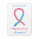 Pérdida de embarazo usa una cinta rosa y azul para apoyar la toma de conciencia por su causa. El imán personalizado presenta un imán artístico de cinta de sensibilización con el mensaje "Apoyo a la sensibilización sobre la pérdida de embarazo". El NIH define la pérdida de embarazo como "cuando un embarazo termina inesperadamente antes de la vigésima semana. A veces se le llama pérdida del embarazo precoz, pérdida del embarazo a mitad de trimestre, aborto espontáneo, o desaparición fetal". El NIH afirma que "la muerte de un feto en la vigésima semana de embarazo o después de ella". El arte de la cinta de concientización se puede personalizar con mensajes personalizados para hacer imanes de mercadería de gran causa para recaudadores de fondos, regalos de concientización u otros eventos o ocasiones de causa especial.