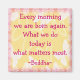 Imán de cita inspiradora con la cita de Buda "Cada mañana nacemos de nuevo. Lo que hacemos hoy es lo que más importa", nos inspira a hacer lo mejor cada día.