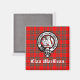 Insignia escudo del clan escocés MacBean (MacBain) con texto de personalizable sobre fondo de lona tartán