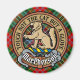 Insignia escudo del clan MacPherson rodeada por una correa y hebilla sobre el fondo del tartán. Texto personalizado.