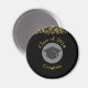 Un imán que dice: Clase de 20xx. Diseñado con un falso purpurina de confeti de oro. Fijado sobre un fondo negro. Ilustrado con una tapa de graduación negra con un círculo semitransparente detrás. Elegante y moda.
