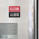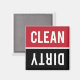 Red, black, and white Clean Dirty Dishwasher magnets. Just reverse or flip the magnet to clean or dirty on the front of the dishwasher to inform your family about the dishes inside. Simple modern design.