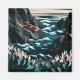 Coastal Energy: This vibrant flat vector illustration captures the dynamic beauty of a rocky beach from an overhead perspective. Dark blue and orange tones bring life to the scene as waves crash onto the shore, creating a captivating contrast. Geometric shapes add depth, while detailed textures on rocks and plants bring a natural feel to this stylized artwork. The minimalistic design emphasizes movement and energy, making it a perfect piece for those looking to add a bold and modern coastal vibe to their collection.