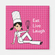 Un chef amable sentado. Gran imán de frigorífico con diseño exclusivo de chef.