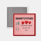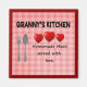 Este imán se verá genial en el refrigerador de tu abuela. Tiene un fondo de gingham rojo con corazones y un mensaje especial para la abuela. Dice "Cocina de abuela - Comidas caseras servidas con amor".