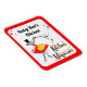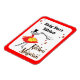 Un imán de frigorífico personalizado con letras de escritura retro para tu nombre, leyendo "Kitchen Magician" con un chica de cocina mágico con letras brillantes retro en negro, rojo y amarillo con un borde rojo.