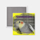 Un Cockatiel que es un tiro de pájaro Mascota que se acerca que es brillante y colorido que está en un MAGNET.