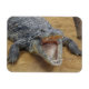 Fotografía de un cocodrilo en la arena con las mandíbulas abiertas.