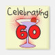 Camisetas de cumpleaños 60, tazas, tarjetas, pegatinas, bolsas de té, botones de cumpleaños 60, imanes y más con un colorido diseño de cóctel y texto que dice "¡Celebrando 60!".