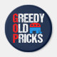 This Anti GOP magnet stands for Greedy Old Pricks in this funny Anti Republican party design featuring the conservative elephant in red, white, and blue. Democrats will love this humor.