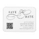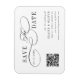 Este imán de anuncio de guardar la fecha con letra de script romántico es perfecto para una boda sencilla. El diseño minimalista en blanco y negro presenta letras de caligrafía giratoria elegantes y románticas con un código QR.