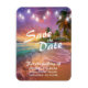 Moderno ahorre el imán boda de fechas combinando elegancia y funcionalidad, haciendo de esta excelente elección para planear su boda de destino de playa tropical. Los elementos de temática de la playa del atardecer tropical, con luces de cuerda, marcan el tono para una celebración verdaderamente romántica e inolvidable. Haga clic en personalizar/personalizar para editarlo más adelante.