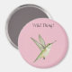 Un dibujo a lápiz de color de una mujer Ruby Throat Hummingbird adorna este imán de '¡Cosa salvaje!'.