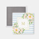 Colirio floral de monograma de chic Pastel Blue Stripes Magnet. Elegante diseño floral de moda con ramos de rosas salvajes de color pastel y vegetación sobre rayas azul claro, marco dorado y monograma personalizado. (El oro no es oro real, sino color). Agradable, chic y sobrio, con un toque de estilo costero-provenzal. Espectacular regalo personalizado