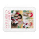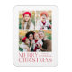 Imán de vacaciones sencillo y elegante con un collage de 3 fotos con "Feliz Navidad" mostrado en letras rojas modernas. Personalice el imán de fotos de los Navidades agregando sus fotos y su nombre.