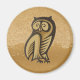 Icono de búho sobre fondo de grano beige. Símbolo de sabiduría y riqueza.
