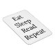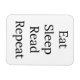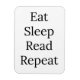 El imán "Comer, dormir, leer, repetir" es perfecto para la persona de tu vida que ama leer. Grabado negro con fondo blanco.