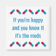 El texto de esta plantilla se puede personalizar. Si eres feliz y lo sabes, son las medicinas. La receta graciosa cita un imán con píldoras alegres azules y rojas adorables sobre un fondo blanco. Humor médico decir hace un chiste divertido para cualquiera que tome o recete antidepresivos. También una gran idea de regalo para un médica, enfermera, farmacéutico, cirujano, psiquiatra o estudiante de medicina.