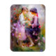 Un cuadro de dos chicas generado por IA en un jardín de flores. Perfecto para el arte en guardería.