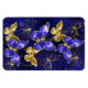 Composición de lujosas mariposas de zafiro y joyas de oro sobre fondo de textura azul.