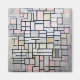 Pieter Cornelis Mondrian (7 de marzo de 1872 - 1º de febrero de 1944), fue un pintor y teórico holandés considerado uno de los mayores artistas del siglo XX. Es conocido por ser uno de los pioneros del arte abstracto del siglo XX, al cambiar su dirección artística de la pintura figurativa a un estilo cada vez más abstracto, hasta llegar a un punto en que su vocabulario artístico se reducía a simples elementos geométricos. El arte de Mondrian era altamente utópico y estaba preocupado por la búsqueda de valores universales y estética. Proclamó en 1914: "El arte es más alto que la realidad y no tiene relación directa con la realidad. Para acercarse a lo espiritual en el arte, se hará el menor uso posible de la realidad, porque la realidad se opone a lo espiritual. Nos encontramos en la presencia de un arte abstracto. El arte debería estar por encima de la realidad, de lo contrario no tendría valor para el hombre". Su arte, sin embargo, siempre permaneció enraizado en la naturaleza. Fue colaborador del movimiento artístico De Stijl y del grupo que cofundó con Theo van Doesburg. Evolucionó una forma no representativa que calificó de neoplasticismo. Este era el nuevo 'arte plástico puro' que él creía necesario para crear la 'belleza universal'. Para expresarlo, finalmente Mondrian decidió limitar su vocabulario formal a los tres colores primarios (rojo, azul y amarillo), los tres valores primarios (negro, blanco y gris) y las dos direcciones primarias (horizontal y vertical). La llegada de Mondrian a París desde los Países Bajos en 1911 marcó el comienzo de un período de cambios profundos. Se encontró con experimentos en cubismo y con la intención de integrarse dentro de la vanguardia parisina removió una 'a' de la ortografía holandesa de su nombre (Mondriaan). Cita:Wikipedia
