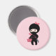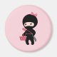 Personalizado guapa ninja chica vestida de negro pero con un arco rosado encima de su máscara de cabeza. Se puede ver la tradicional espada japonesa de katana atada a su espalda, su mango también color rosa. El chica sostiene una canasta de compras rosa.