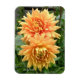 Imán con dahlias naranjas con gotas de lluvia