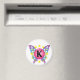El logo "K" de la bonito incluye coloridas alas de mariposa y un halo de estrellas.