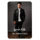 Este imán flexible de paginación masculino se muestra en un diseño para que usted utilice sólo el personalizar y cambie la foto de ejemplo a la suya y cualquier información de texto que necesite cambiar. Imagen de stock